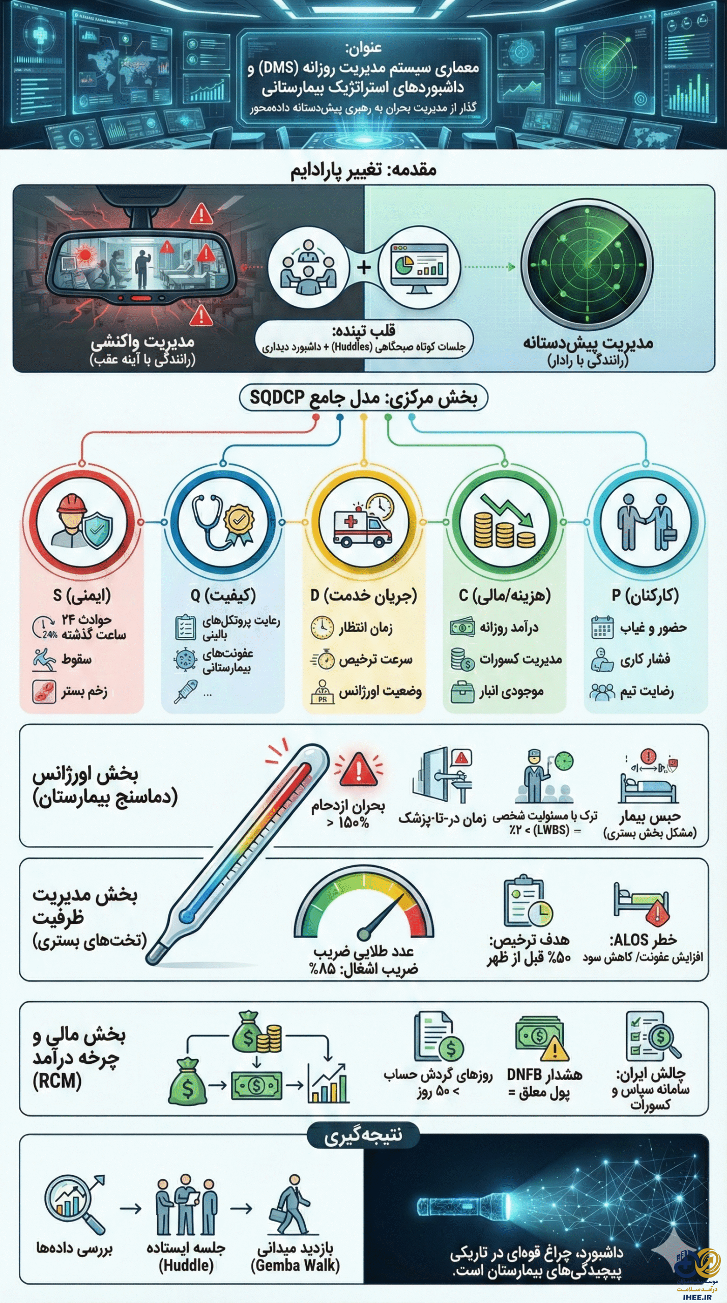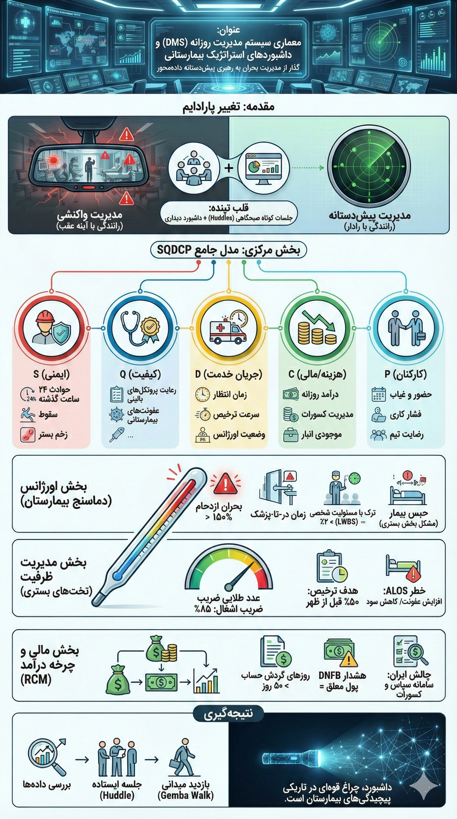 معماری جامع سیستمهای مدیریت روزانه و داشبوردهای راهبردی در بیمارستانهای پیشرو: تحلیلی عمیق بر شاخصهای حیاتی عملکرد