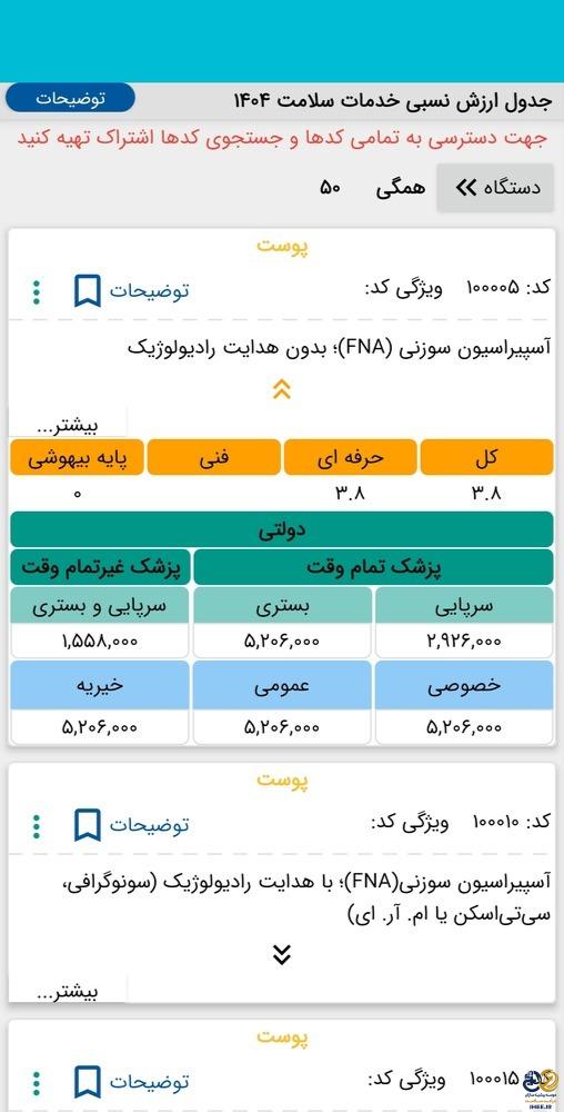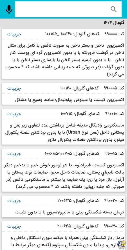 ✅ جستجوی سریع کدهای خدمات پزشکی همراه با شرح کامل و ارزش نسبی هر خدمت