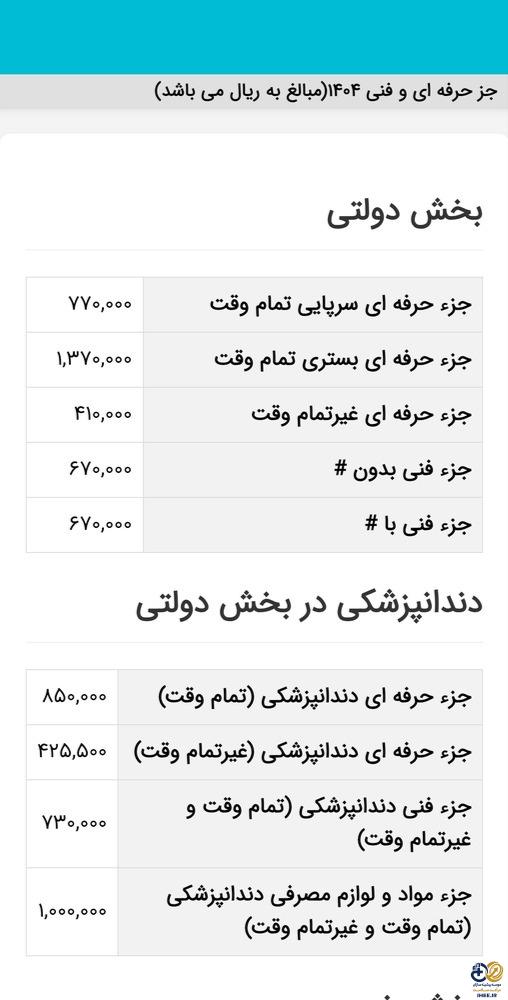 - تعرفه ریالی خدمات پزشکان تمام وقت و غیرتمام وقت