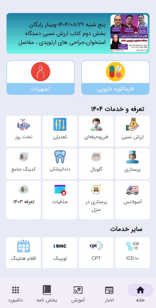 نرمافزار «درآمد یار»، محصول تخصصی تیم بیشینهسازان درآمد سلامت (IHEE)، پاسخی جامع به این نیاز است. این اپلیکیشن قدرتمند اندرویدی، کتابخانه کامل ارزش نسبی، کدگذاری و تعرفهها را به صورت رایگان در دستان شما قرار میدهد.