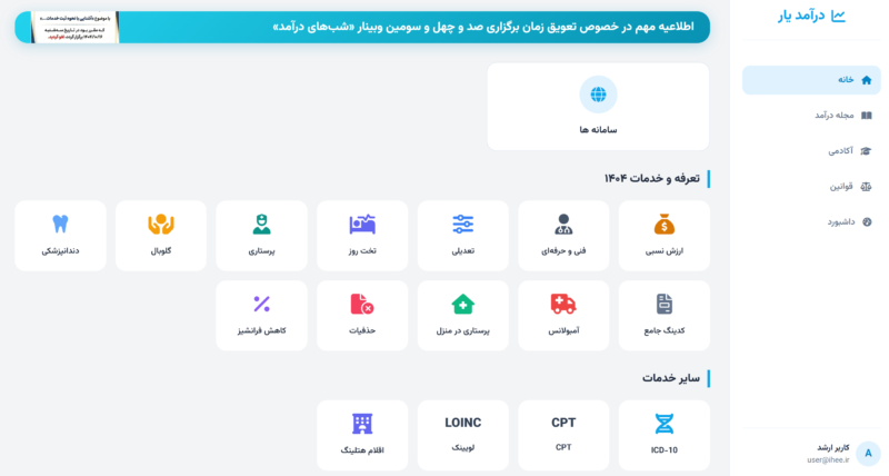 • نرم‌افزار ارزش نسبی خدمات: اپلیکیشن اندرویدی رایگان شامل شرح کدها، محاسبه ارزش ریالی و کدینگ ICD و CPT.